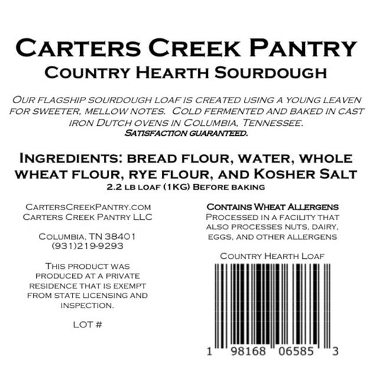 At Carters Creek Pantry we make our bread with as few ingredients as possible. Our sourdough has no preservatives and has a shorter shelf life than store-bought bread. We recommend...
